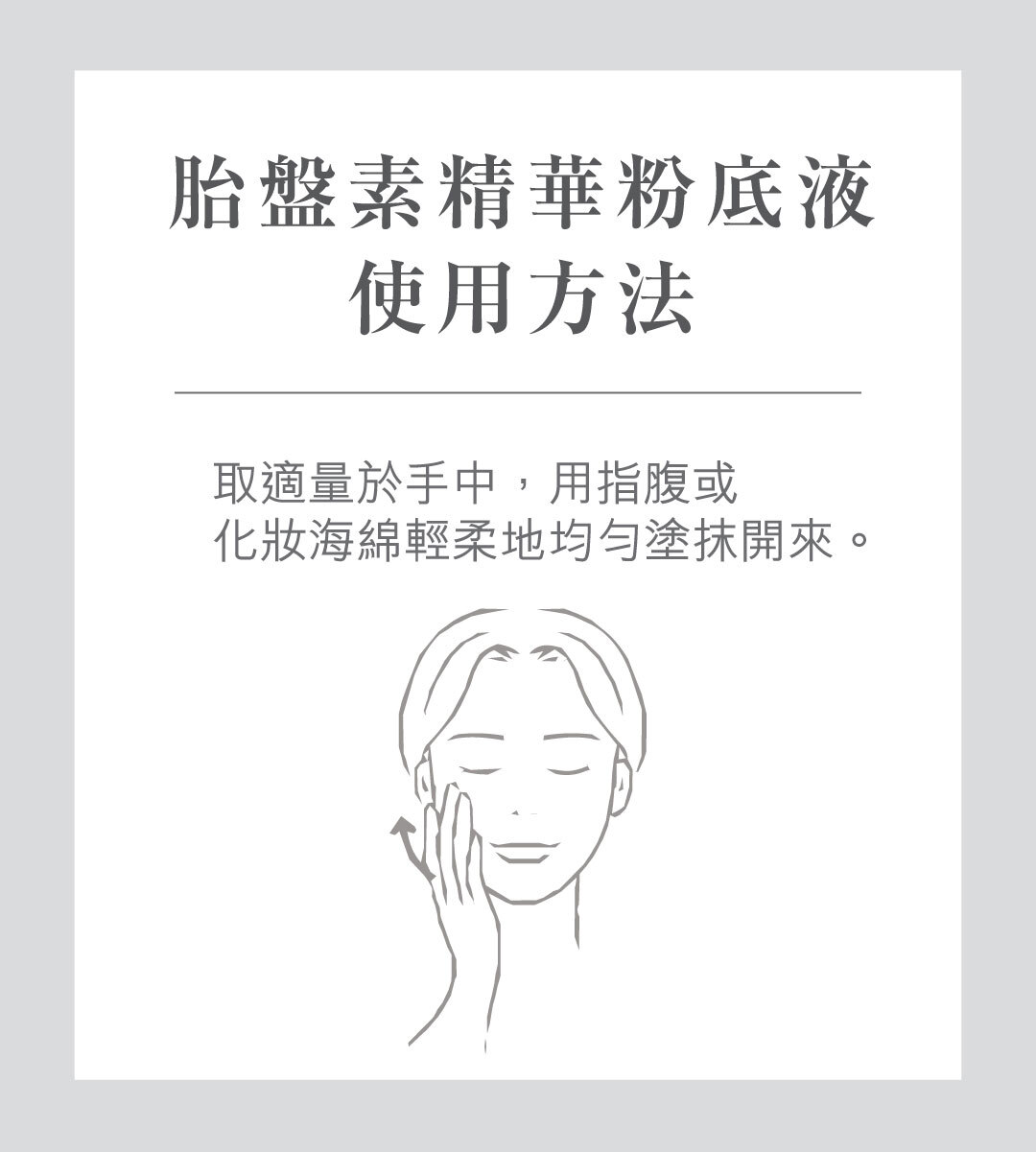 • 日本北海道胎盤素+水解膠原+維他命E+維他命原B5,邊上妝邊抑制黑色素、狂補水彈潤